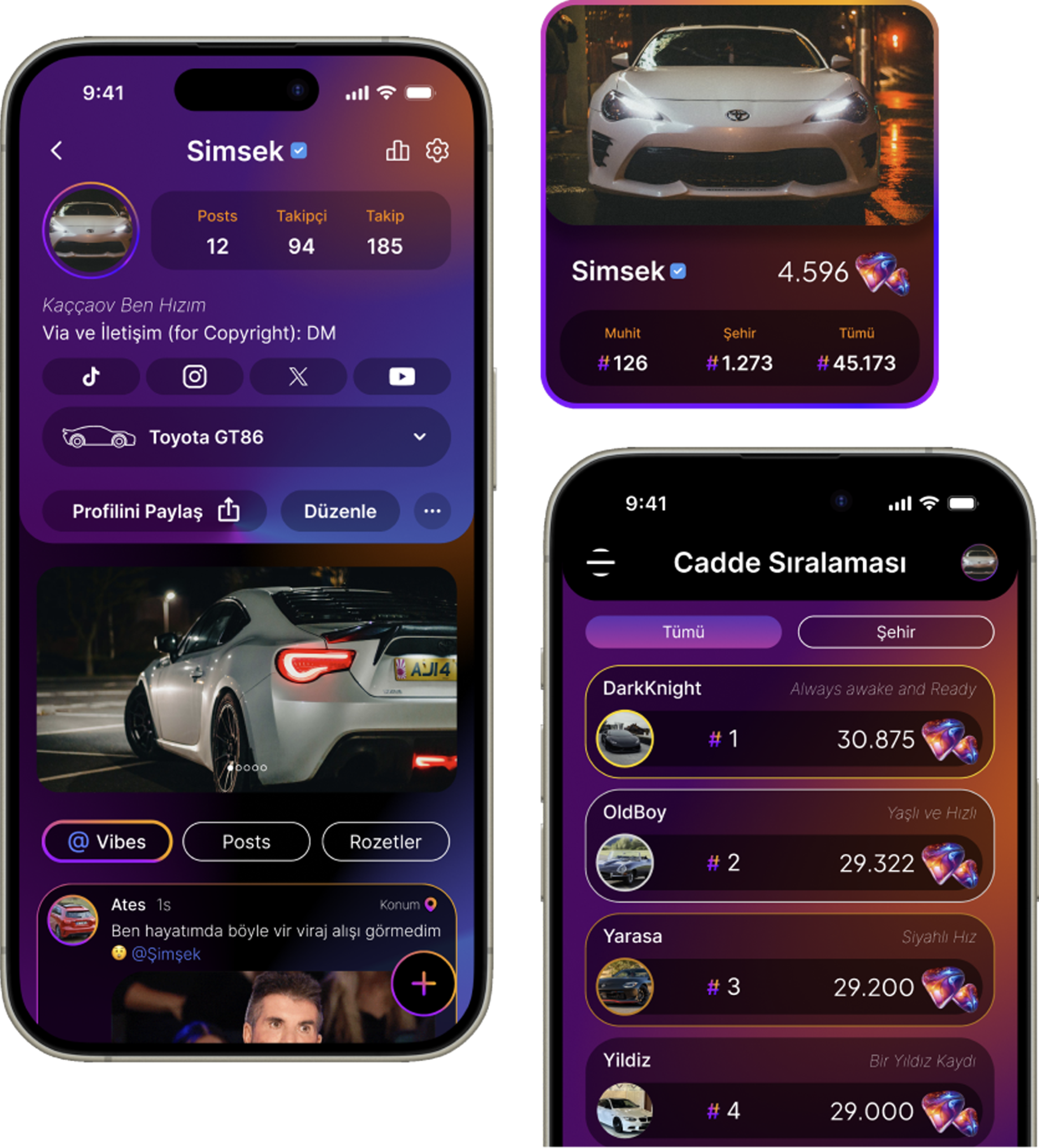 Aracınla Cadde App topluluğuna katıl sosyalleş, sıralamadaki yerini al