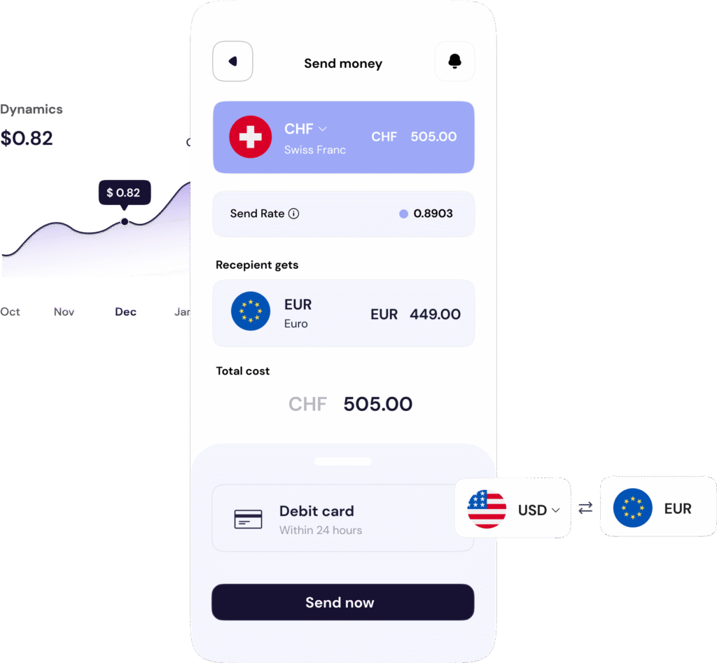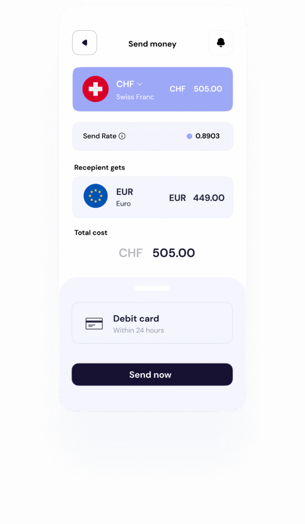 You’ll be able to send money with no hidden fees at the real exchange rate.
